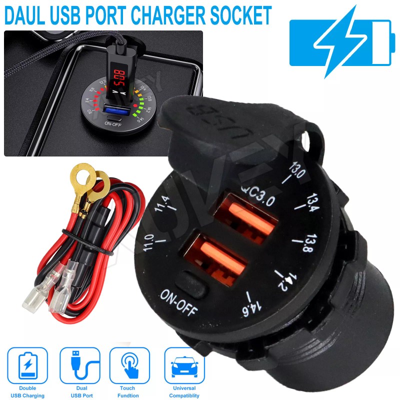 Array 12-24V QC3.0 Quick Charge Dual USB Car Charger Waterproof Socket LED Voltmeter