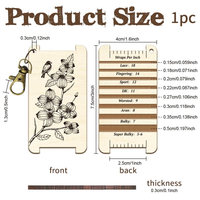 - Dogwood Branch Bird Pattern -- The yarn WPI guide gauge is designed in matte finish, wood texture, carved with dogwood branch, bird patterns, plant theme, exquisite and vivid, decorative while practical, adding more visual enjoyment and fun at your knitting process