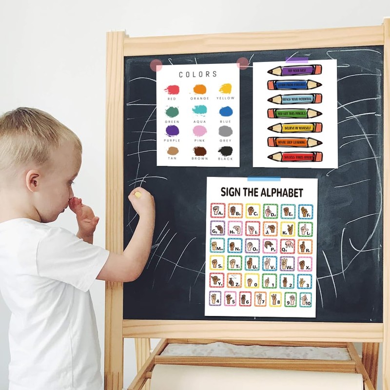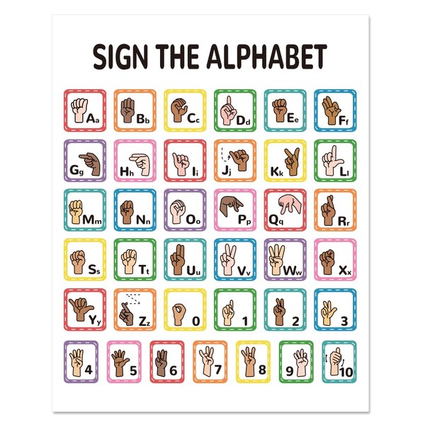 arricraft 1 Piece ASL Alphabet Chart Poster American ABC Sign Language Print Classroom Number Decor Educational Studies Learning Decor Poster for Nursery Spring School