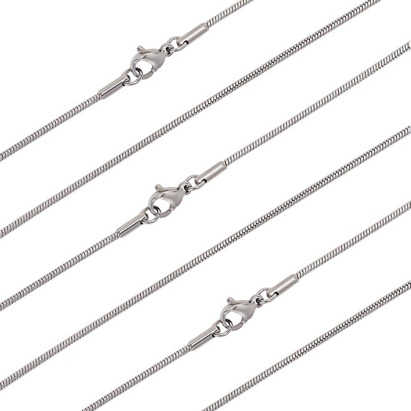 arricraft Pack of 10 Necklaces with Snake Chain, 45.7 cm 316 Surgical Stainless Steel Chain Neck with Carabiner Hook, Snake Chain for Jewellery Making Men Women DIY