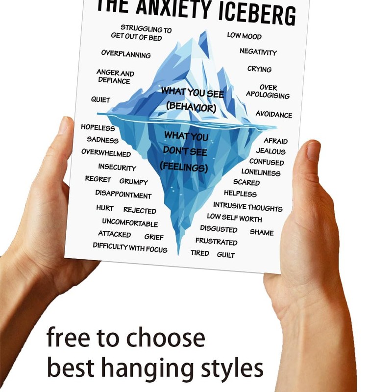 • Anxiety Iceberg Posters -- Our posters are printed with the Anxiety Iceberg patterns, and theme words of "what you see (behavior)" lying on the water, "what you don't see (feelings)", this is under the water, the clear layout helps mental health employees better implement mental health projects