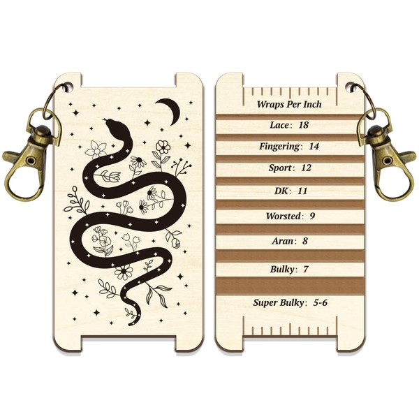- Snake pattern -- The yarn guide gauge WPI is designed in matte finish, wooden structure, carved with snake, stars, moon, plants, floral pattern, exquisite, beautiful and vibrant, decorative and practical at the same time, adding more visual joy and fun when knitting