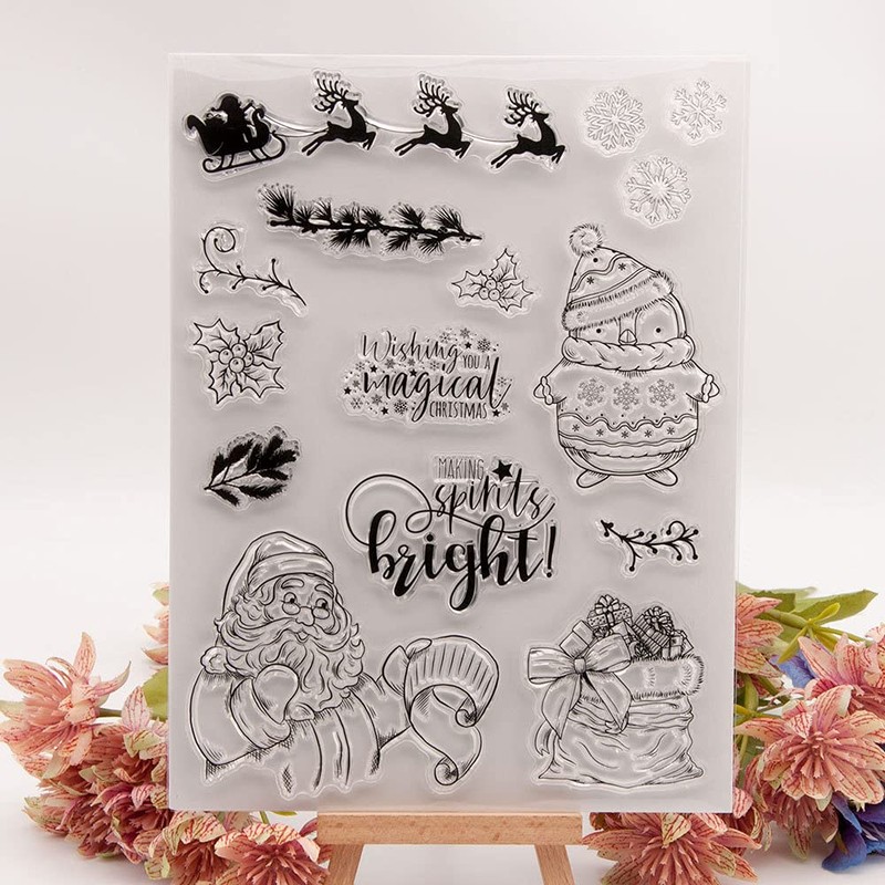 arriettycraft Santa Clause Christmas Sleigh Snowflakes Penguin Rubber Stamps Clear Stamps for Christmas Card Making Decoration and DIY Scrapbooking Crafts