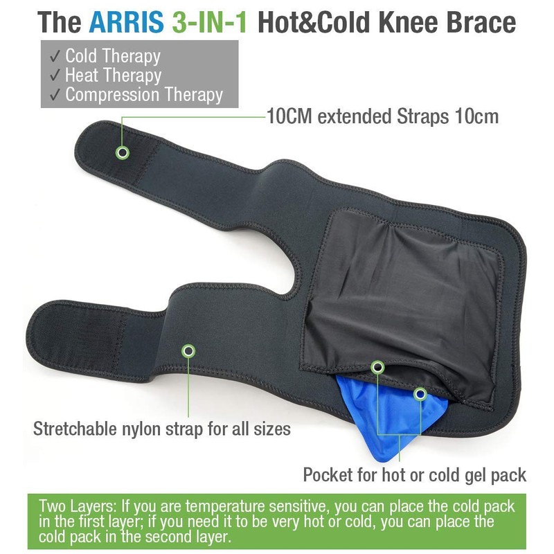 ARRIS Ice Gel Knee Brace for Hot and Cold Therapy, Reusable, Knee Injuries, Joint Pain, Bursitis Pain, Meniscus Tear, Sprains and Swelling