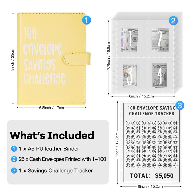 - BEST GIFT:100 Envelopes Money Saving Challenge Binder is the best gift for your family, complete the money saving challenge with your family in a more fun way! Whether you're a kid or an adult, our 100 Envelopes Money Saving Challenge is the perfect tool to help you save money and reach your financial goals.