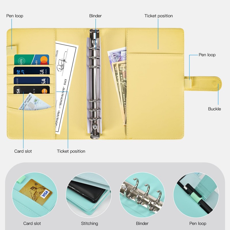 - EASY TO CARRY AND USE:The cash binder is the right size for you to take it anywhere. The transparent inner volume consists of 25 pages. There are 4 card slots on theof each page, a total of 100 card slots. A rich combination of accessories allows you to complete records anytime, anywhere.