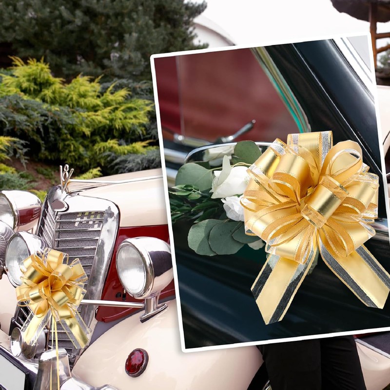 ARROMI 12 PCS Gold Bows for Gift Wrapping, Bows for Gift Wrapping, Golden Ribbon Pull Bows Gift Wrap Bows for Gift Wrapping Baskets Wedding,Valentine's,Birthday Gift,Christmas