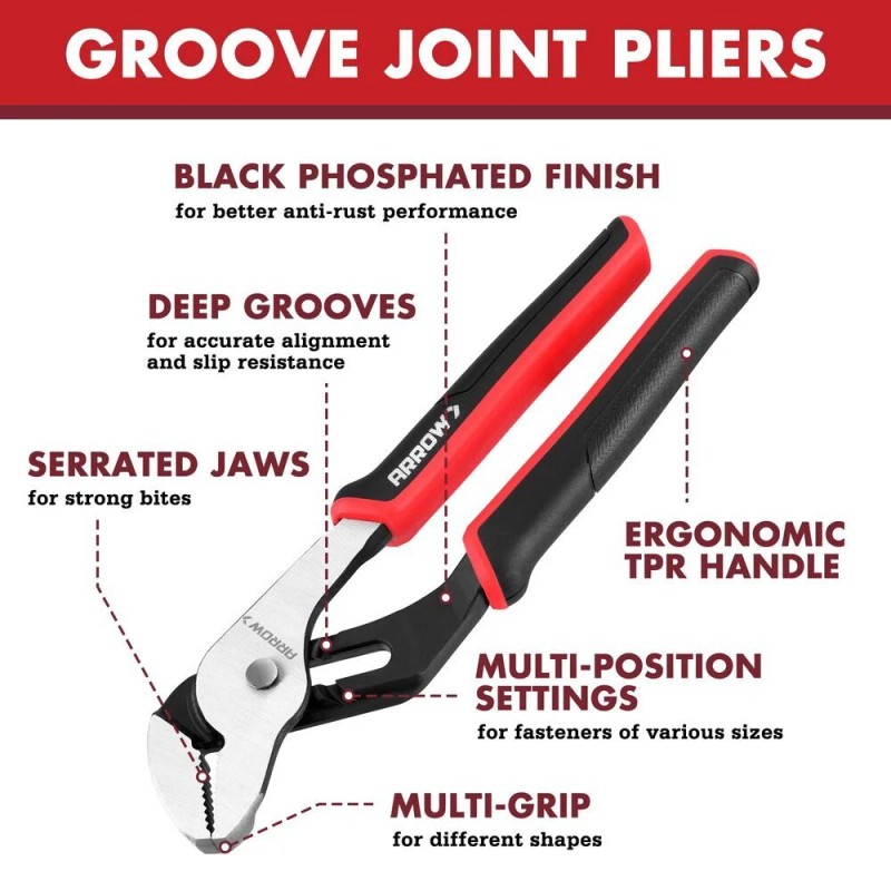 ARROW 2-Piece Adjustable Groove Joint Plier 8" 10" Carbon Steel Water Pump Plier