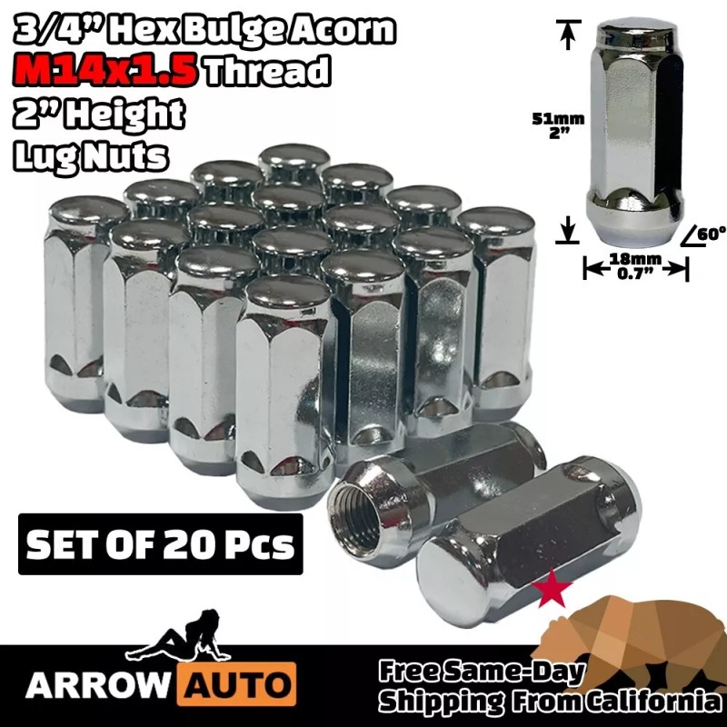 ARROW 20x 2" Tall Chrome M14x1.5 Bulge Acorn Lug Nuts 3/4" Hex Fit Land Rover