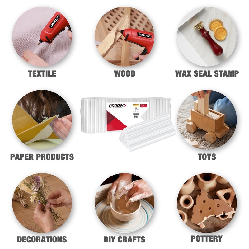 Arrow Full Size Hot Glue Sticks, 200 Pack Clear Glue Gun Sticks, 4" and 1/2' Diameter High Viscosity All-Purpose Glue Stick for DIY Art, Craft General Repairs, Festival Home Decoration | Arrow Fastener