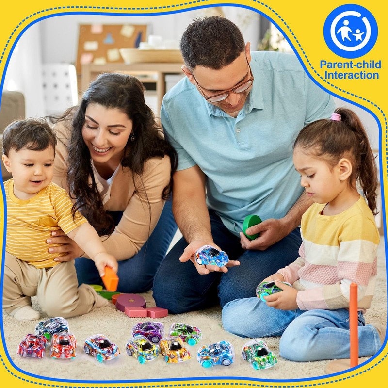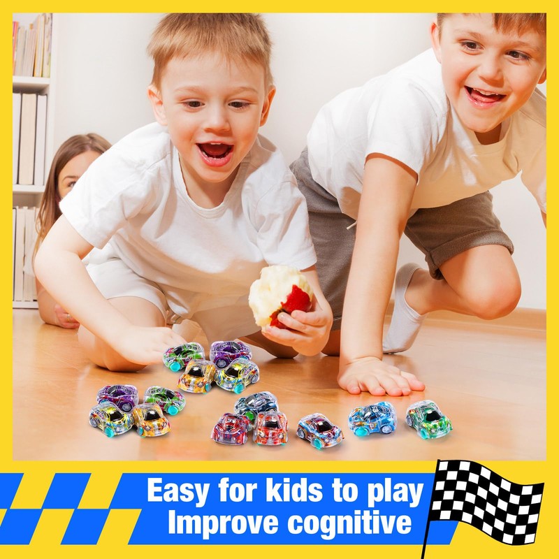 - Pull Back and Go: just pull mini cars back and then the vehicle will automatically move forward quickly; Not need to use battery, and it is easy to play; Their pull back and go mechanism lets junior racers enjoy non stop fun while stimulating their sensory motor skills and improving their hand eye coordination