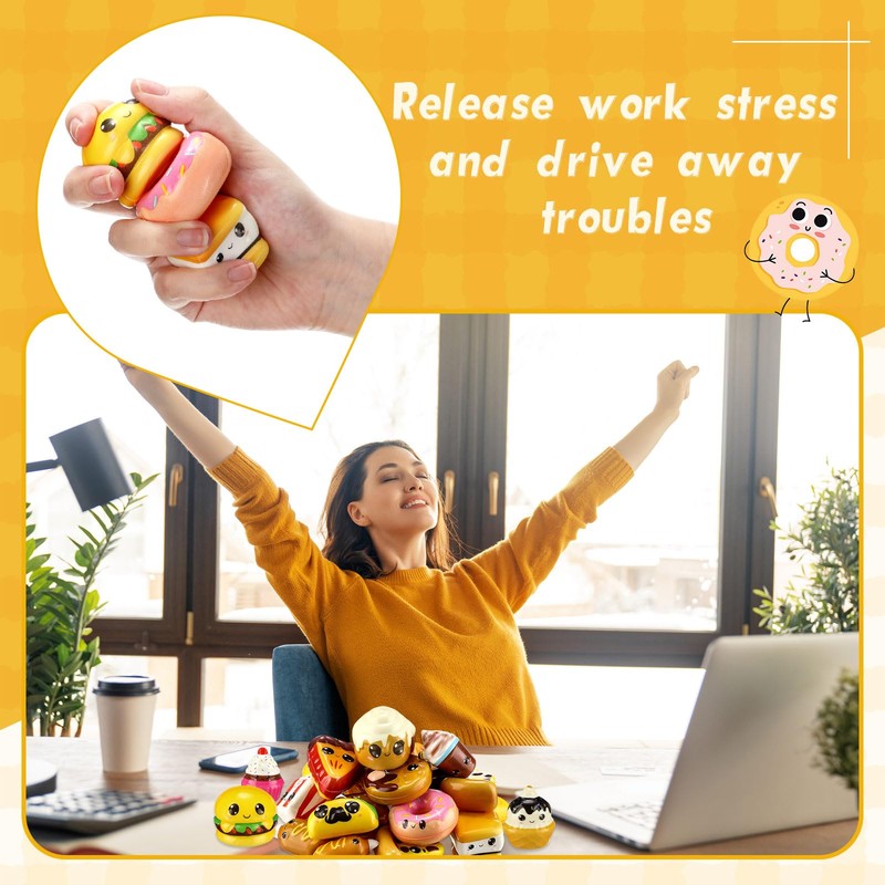 - Ideal decoration: Placing these squeeze food toys in the kitchen, office, and room adds color to your space, it's really nice. They can also be applied as car decorations and delicious decorations for fast food themed birthday parties