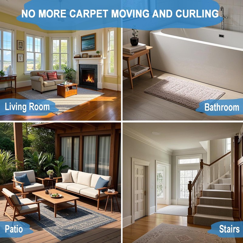 - Protect Your Family: Our rug gripper for tile floors protects the utmost safety to kids and elderly by preventing the area rugs and carpets from curling or slipping, Don't worry about your family being hurt by tripping over the rug