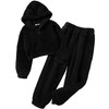 Arshiner Girls 2 Piece Outfits Long Sleeve Ear Sweatsuit Set Kids Fuzzy Lounge Sets with Pockets Black 5-6Y