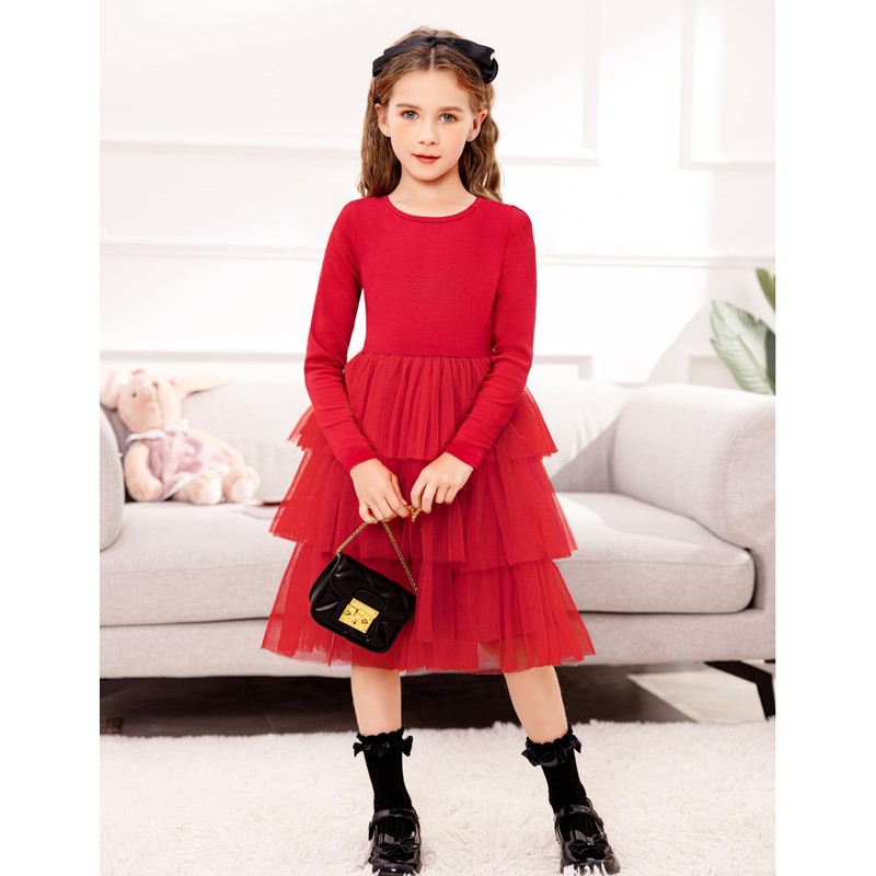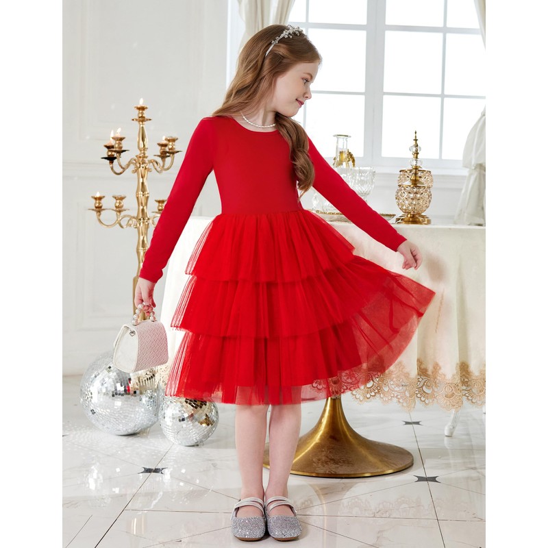Arshiner Toddler Tutu Dres Girls Long Sleeve Red Xmas Holiday Birthday Party Tulle Dresses 5 Years