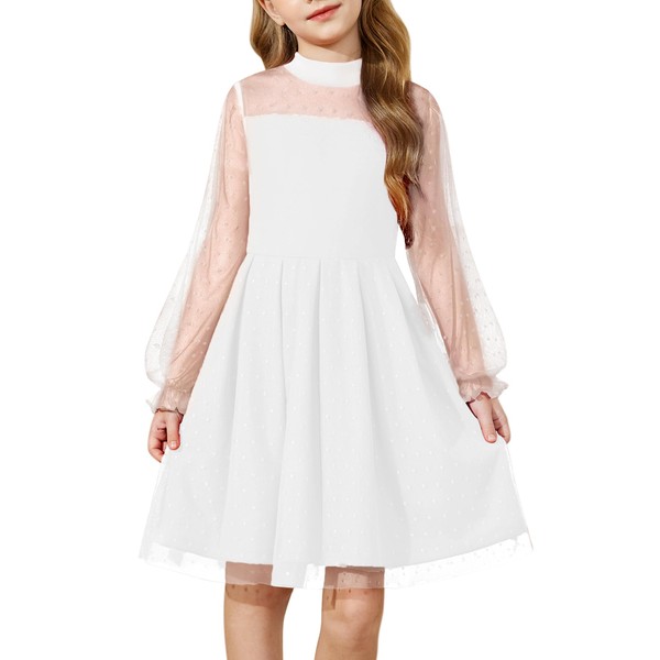 Arshiner White Dress for Girls Fall Long Sleeve Flower First Communion Wedding Dresses Size 10-12