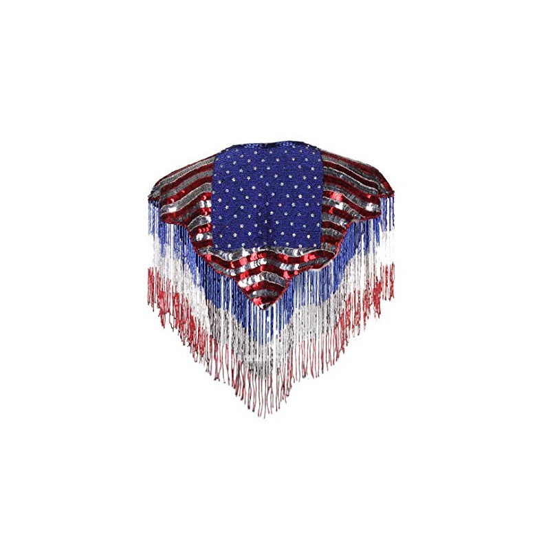Arsimus USA Patriotic 4th of July Stars & Stripes Sequins Beaded Shawl with Fringes