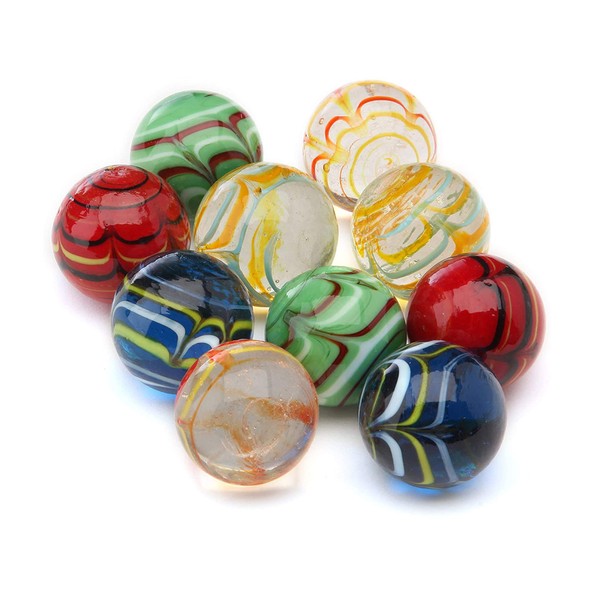 - Contents - 10 pieces handmade wonderful design and assorted coloured glass marbles with the same size and colour come in net bag inside a white cardboard package/box. Our beautiful looking marbles are usable for the ages of 3+ to adult