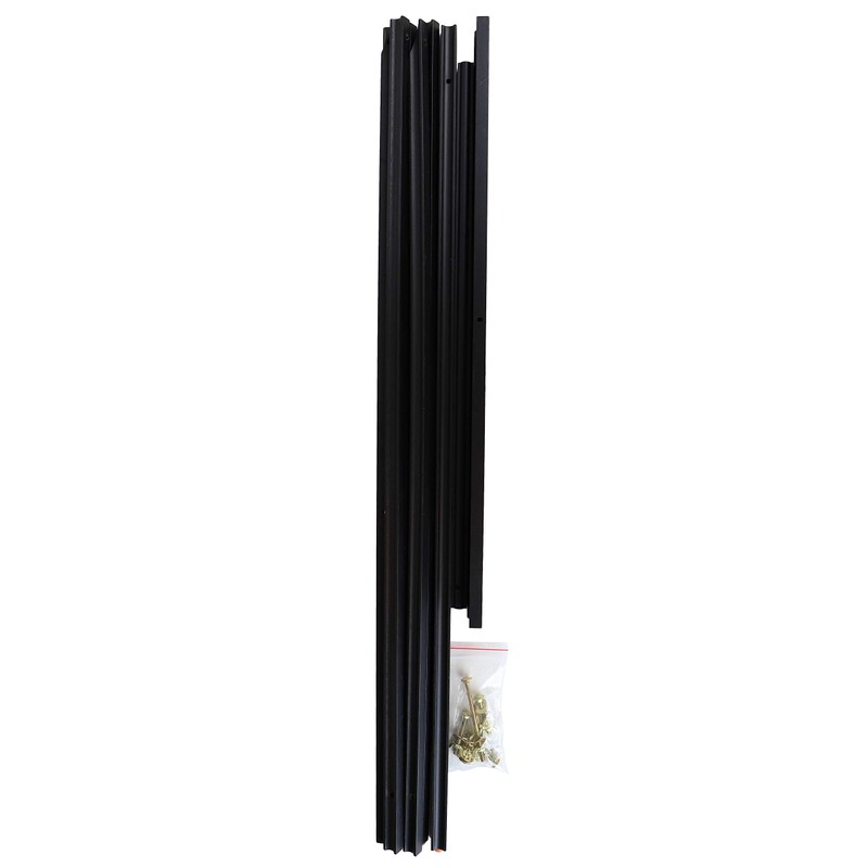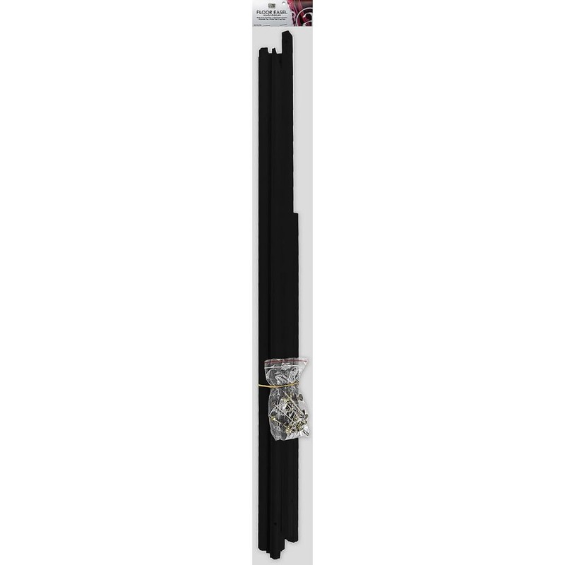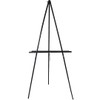 Art Advantage black floor display easel. Lightweight and portable, this economical easel is the smart choice for displaying artwork, signage or even menus or restaurant specials. Each easel is made of kiln-dried pine and features an adjustable bottom tray, rubber feet and a leg chain for added stability. 64" tall. Assembly required. Instructions included.