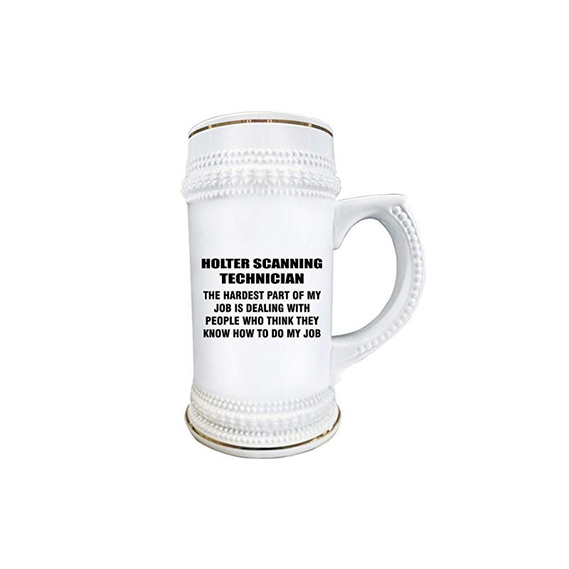 Art by Chelsydale Funny Gifts for Holter Scanning Technician Beer Stein Mug 22oz Ceramic Novelty Drinkware - HST Cardiovascular Technologist EKG Monitor Tech Gag - Hardest Part of My Job