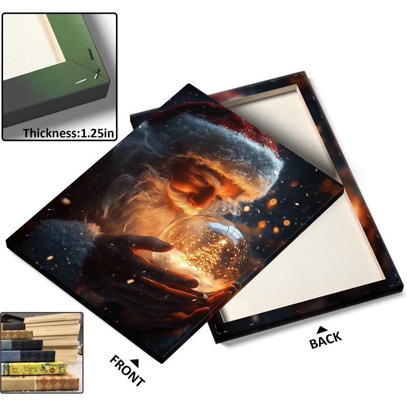- Heartwarming Christmas Miracle Wall Decor: This Christmas wall art captures the magic of the season with Santa Claus holding a glowing snow globe, symbolizing the miracle and hope of Christmas. The soft light illuminating Santa's face creates a warm and magical holiday atmosphere, making it the perfect piece to add festive charm to your home.
