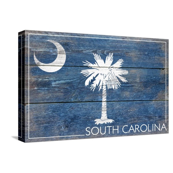 ART.COM Stretched Canvas Print South Carolina State Flag - Barnwood Painting by Lantern Press, 18" x 12"