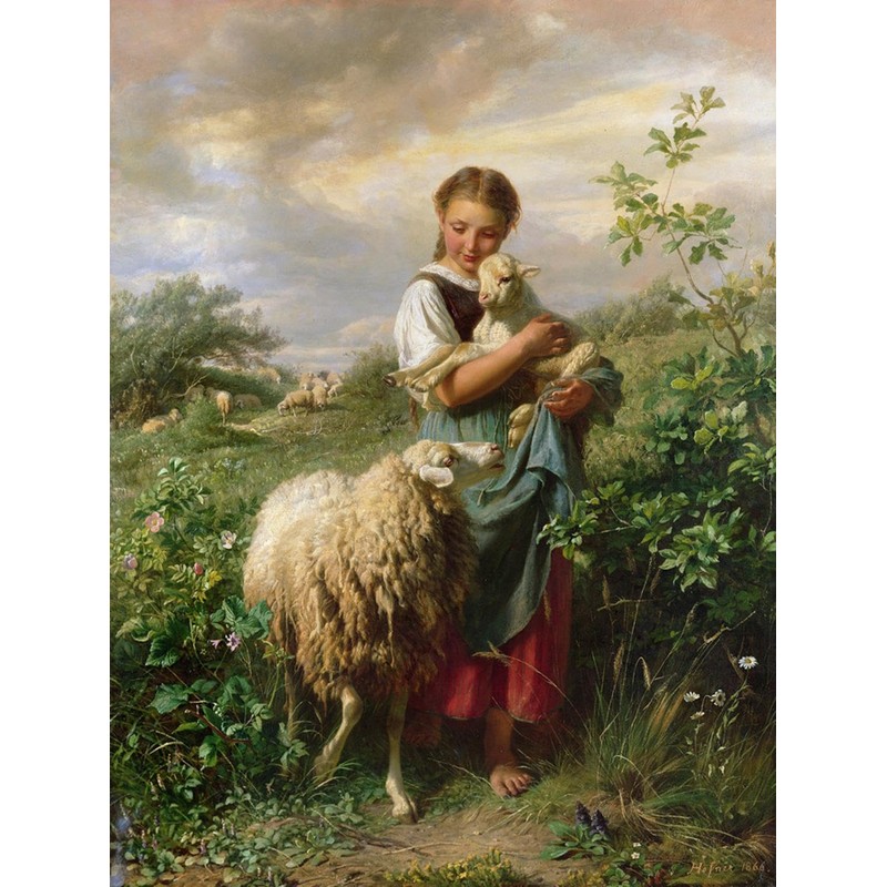 ART.COM Wall Giclee Print The Shepherdess, 1866 by Johann Baptist Hofner, 12" x 16"