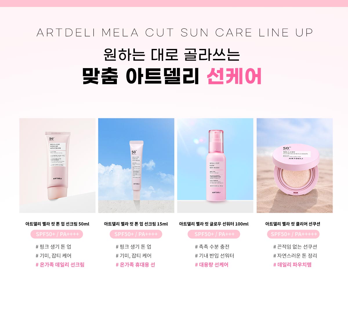 [파데프리 쌩얼크림] 아트델리 멜라 컷 톤 업 선크림 50ml * 4통