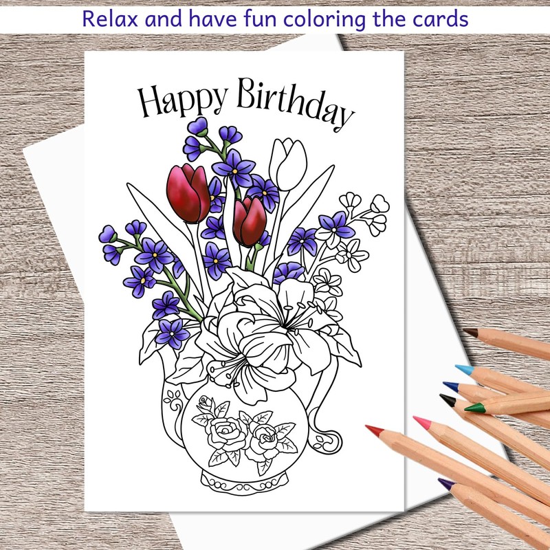 - QUALITY CARDS AND ENVELOPES - Printed on 250gsm uncoated card stock, shipped flat for easy coloring and scored ready to fold to A6 (4x6 inches) cards, envelopes included