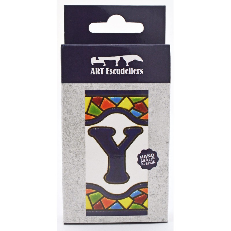 Art Escudellers Handpainted polichrome ceramic tiles. letters and numbers handpainted using dry rope technique perfect to create signs,addresses and names. Design MOSAICO MINI 2,87" X1,38 (LETTER Y)