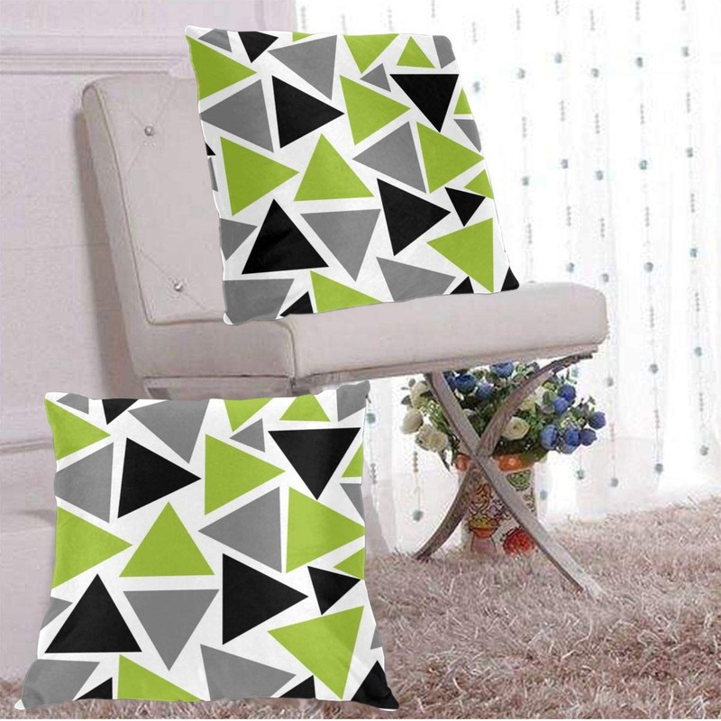 Art Fan-Design Cushion Cover Random Triangles Lime Green Gray Black On White Set of 2 Square Throw Pillow Case Sham Home for Sofa Chair Couch/Bedroom Decorative Pillowcases