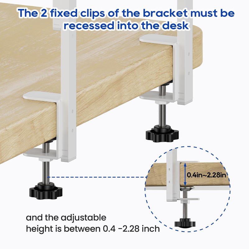 - 【No-Drill Installation】 -- Dual C-clamps secure to table tops ranging from 0.4-2.28 inches in thickness, simply hand tighten, no tools or drilling holes in the table top.