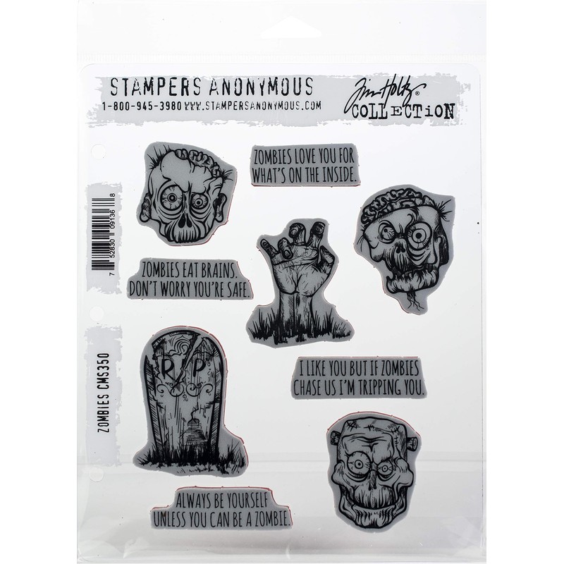 - Nine Zombie themed cling mount stamps include a Tombstone 3 zombies a Hand and 4 Zombie themed sentiments