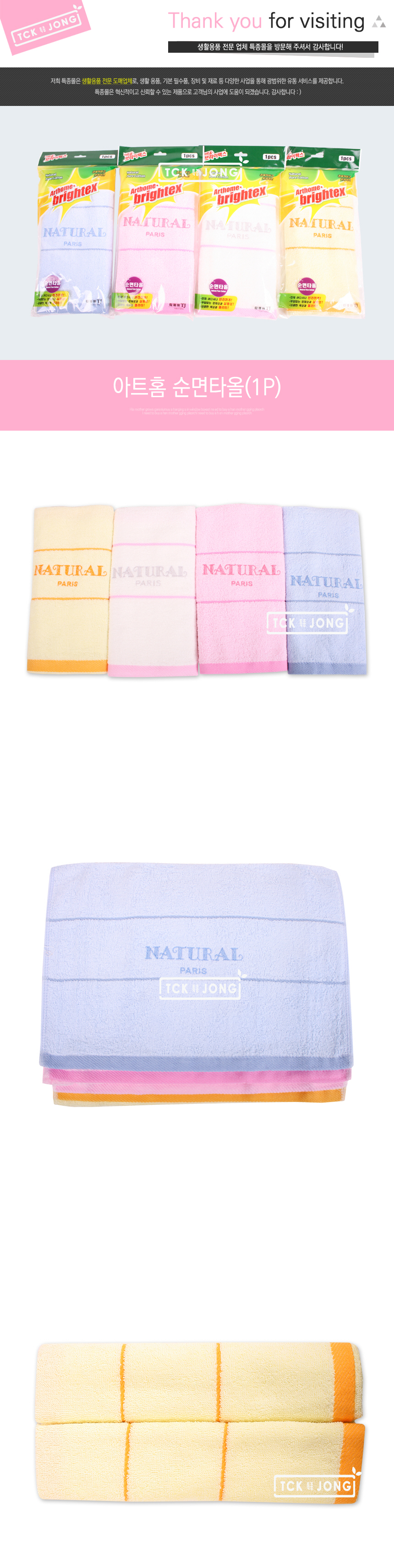 Art Home Pure Cotton Towel 1P (Random Color) 40x80cm 2ea