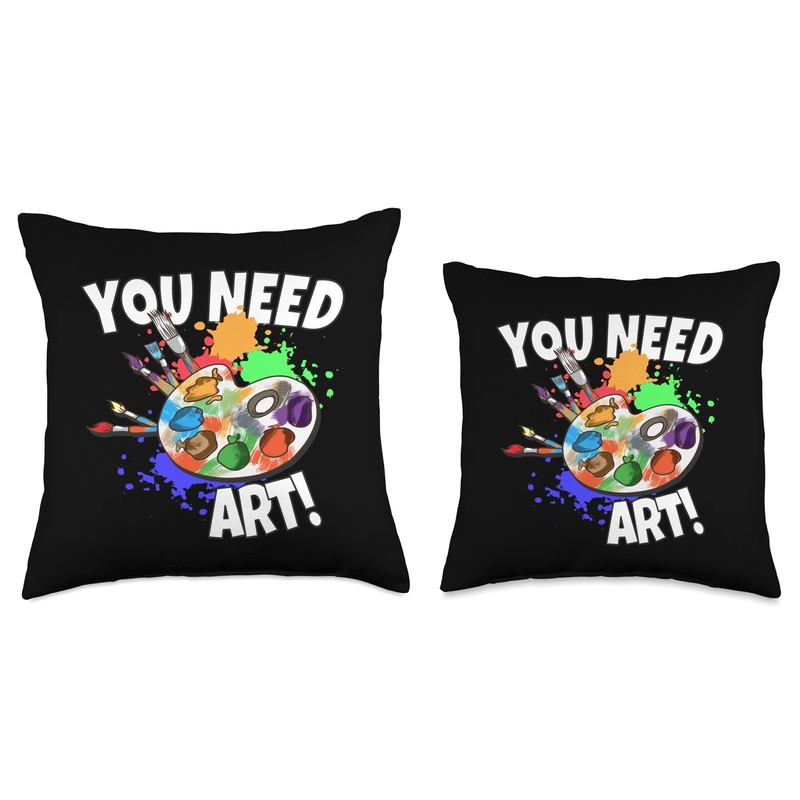 Art Lesson Felt-tip Pens Creative Painter Brush Artist Draftsman Paint Stains You Need Art Throw Pillow, 16x16, Multicolor
