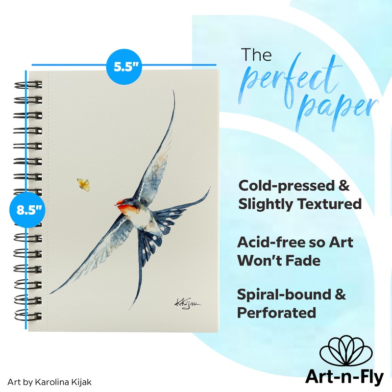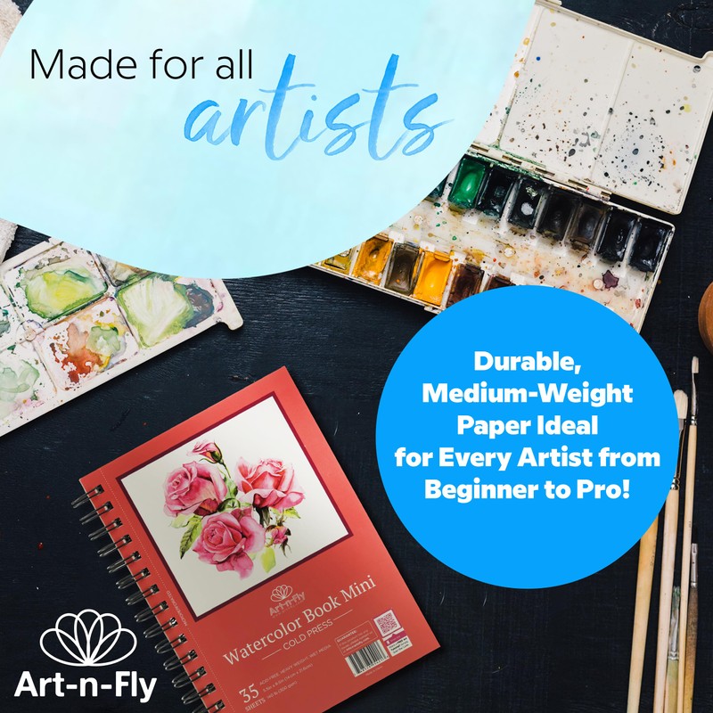 Art-n-Fly 5.5 x 8.5 in Watercolor Sketchpad Mini Book - 2 Pack x 35 Sheets Each- Spiral Bound and Microperforated - 300gsm / 140lb 8.5x5.5'