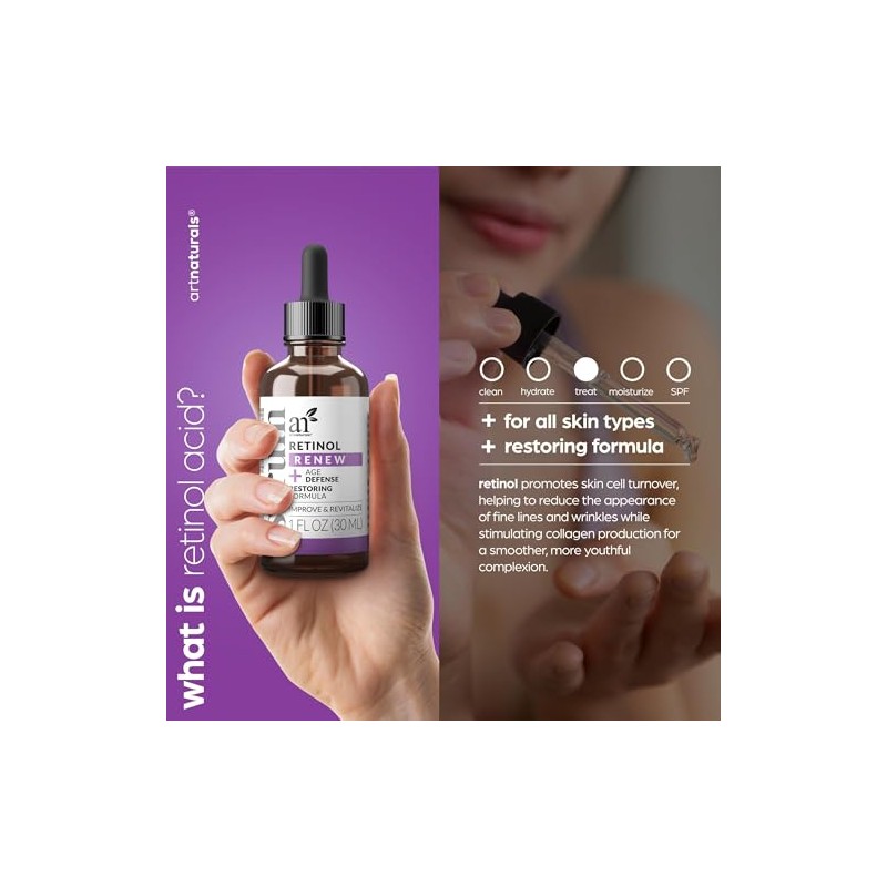 Art Naturals Suero de retinol mejorado 2,5 con 20 de vitamina C y cido hialurnico 1 oz, el mejor suero antiarrugas y antienvejecimiento para rostro y