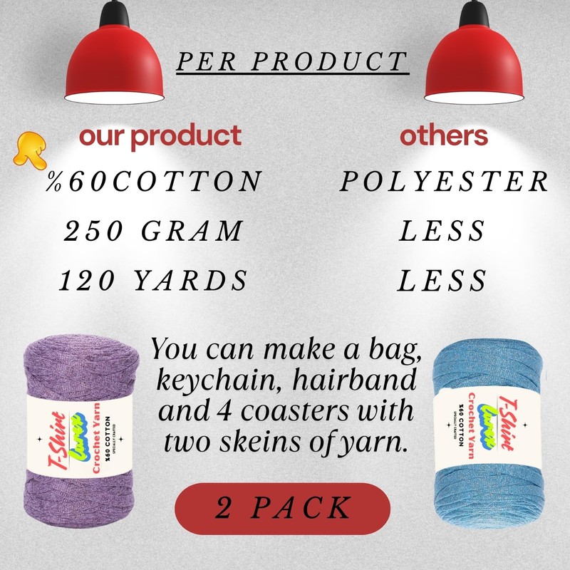 - PREMIUM COTTON-POLYESTER LUREX T-SHIRT YARN Crafted from 60% COTTON and 20% Viscose & Polyester - 20% Metallic Polyester, Art of Yarn T-Shirt Yarn is soft, durable, and easy to crochet or knit. Designed for both beginners and experienced crafters, its stretch and resistance to pilling make it a top choice for blankets, baskets, bags, and home decor projects.
