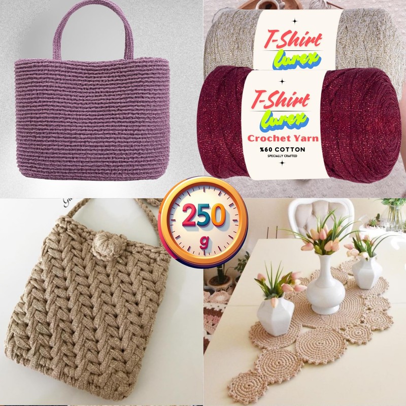 - PREMIUM COTTON-POLYESTER LUREX T-SHIRT YARN Crafted from 60% COTTON and 20% Viscose & Polyester - 20% Metallic Polyester, Art of Yarn T-Shirt Yarn is soft, durable, and easy to crochet or knit. Designed for both beginners and experienced crafters, its stretch and resistance to pilling make it a top choice for blankets, baskets, bags, and home decor projects.