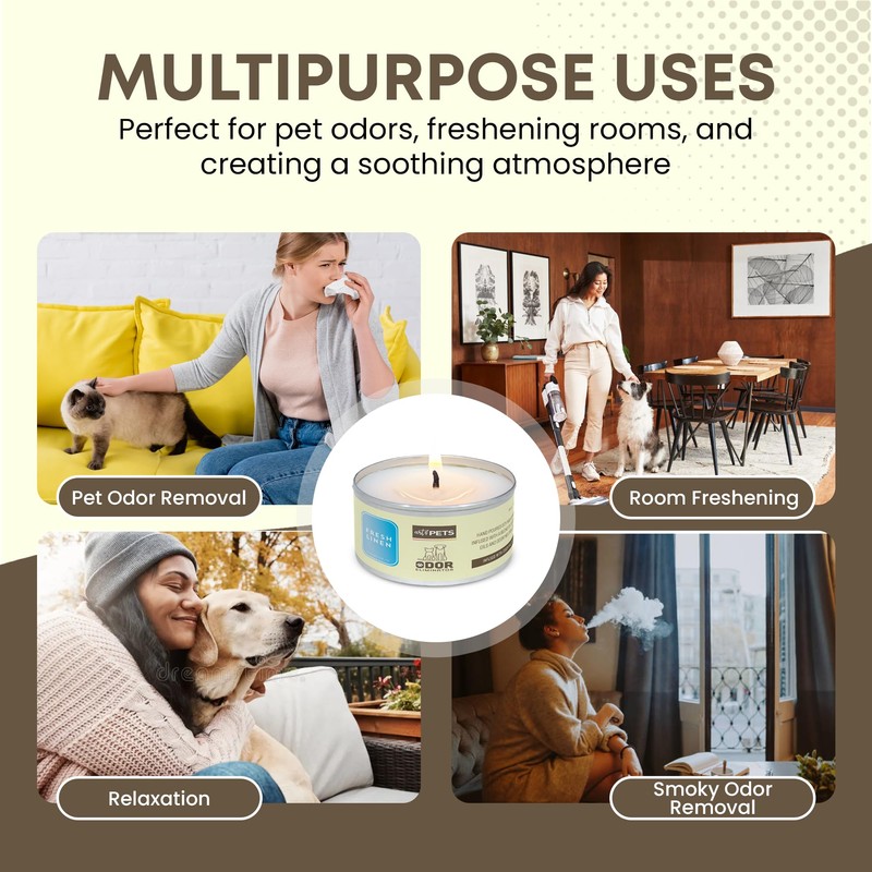 - 𝐒𝐚𝐲 𝐆𝐨𝐨𝐝𝐛𝐲𝐞 𝐭𝐨 𝐏𝐞𝐭 𝐎𝐝𝐨𝐫𝐬: Our Pet Odor Eliminator Candle is specifically designed to tackle even the toughest pet smells, including litter box odors, wet fur, and everyday messes. Unlike sprays or synthetic alternatives, our odor eliminator for strong odor candle neutralizes odors at the source, leaving your home smelling fresh, clean, and welcoming.
