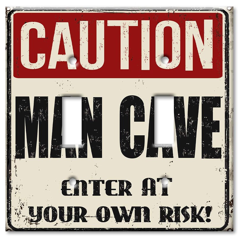 - Caution Man Cave - Double Gang Toggle OVER SIZED / OVERSIZE Wall Plate - Size: 5.5 x 5.5
