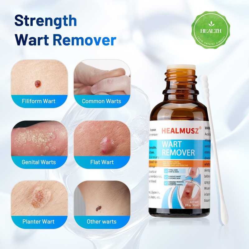 HEALMUSZ Wart Remover Liquid with 5% Salicylic Acid – Freeze Off Treatment for Plantar, Genital, Common, Flat Warts, Corns & Skin Tags on Feet and Toes.(NDC Code:84010-040-02) (1, Fresh)