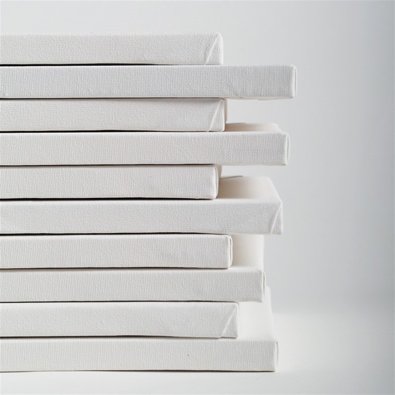 • Art-Star University: Stretched canvases on stretcher frames in solid entry-level quality. Ready-to-paint stretched white blank canvases on stretcher frame. Stretcher frame profile: 17 x 26 mm (H x W) from format 30 x 60 cm and 15 x 25 mm (H x W) for smaller formats. Canvas cloth: ±280 g/m² 100% cotton, ready to be painted