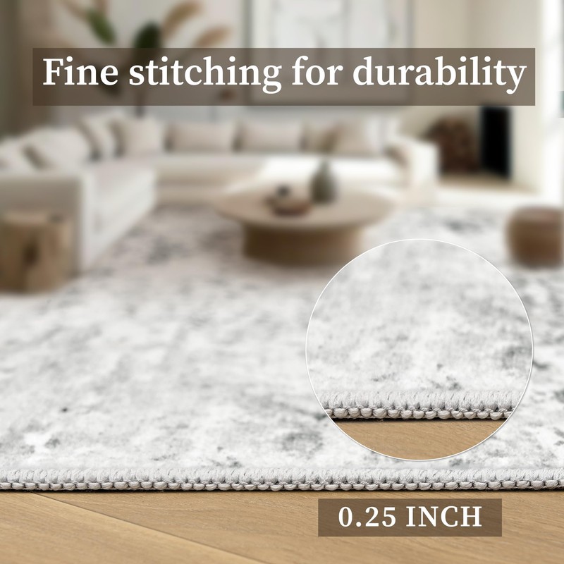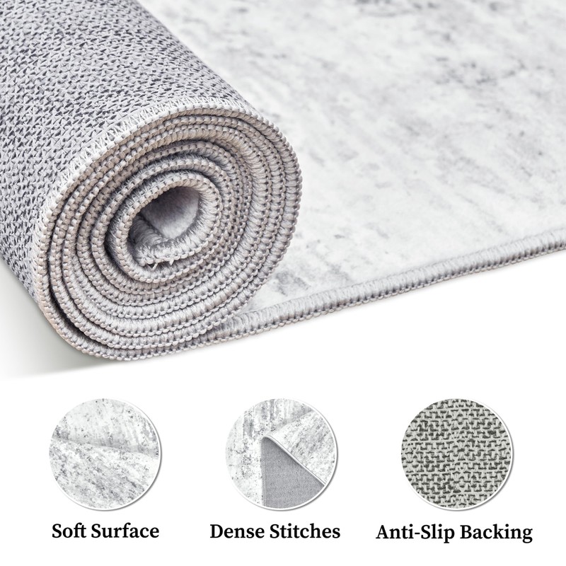 Art&Tuft Washable Rug, Anti-Slip Backing Abstract Area Rugs, Stain Resistant Rugs for Living Room, Foldable Machine Washable Area Rug(01-Grey, 5'x7')