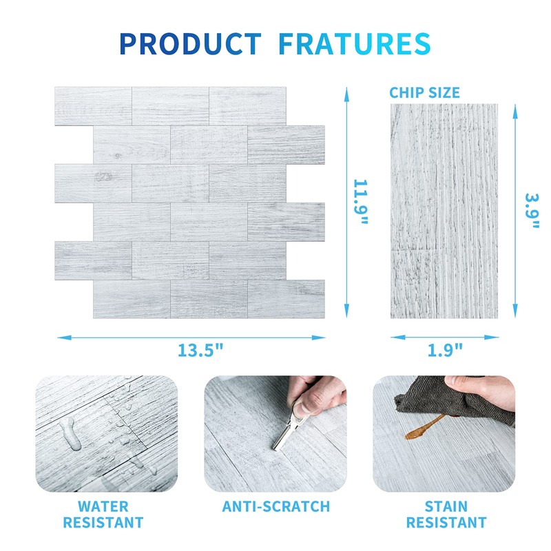 Art3d 10-Sheet Peel and Stick Backsplash PVC Wall Tile, Stickon Tile for Kitchen Backplash, Bathroom Vanities, Fireplace Decor, Laundry Table, Stair Decals in White-Washed, Plastic-Sheets