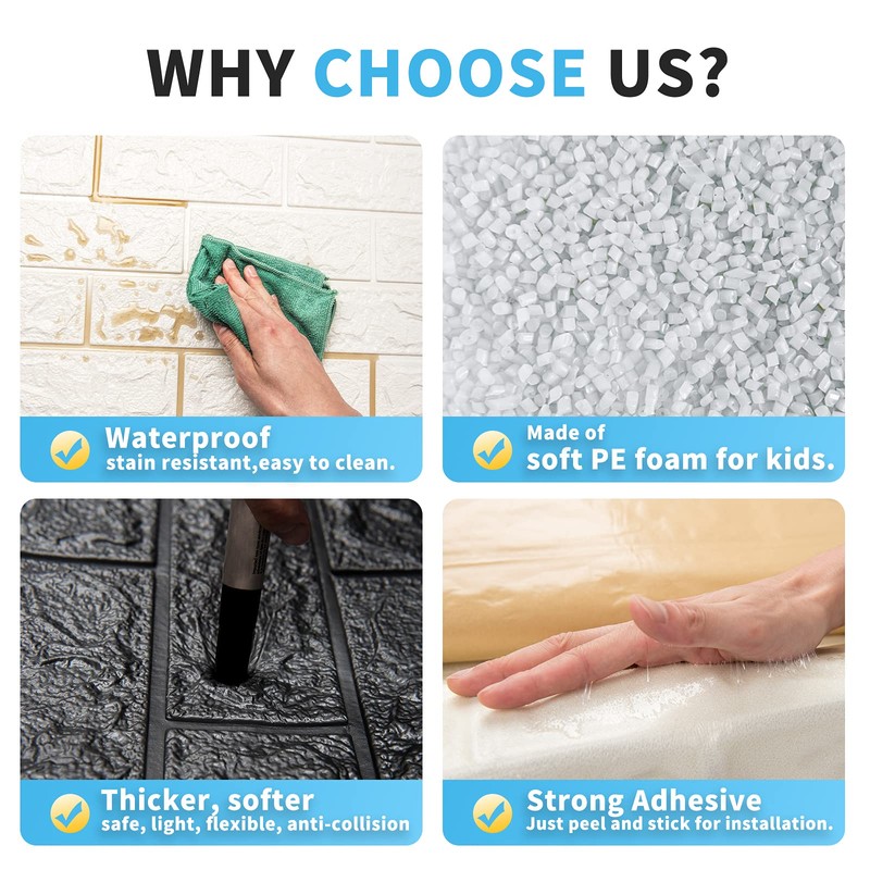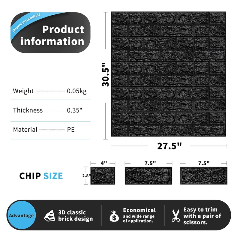 - Extra large size faux brick PE foam wall tile, easy DIY, just peel and stick on wall