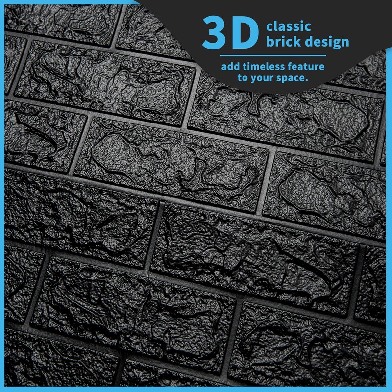 Art3d 11-Pack 64 Sq. Ft Peel and Stick 3D Wall Panels for Interior Wall Decor, Self-Adhesive Foam Brick Wallpaper in Black