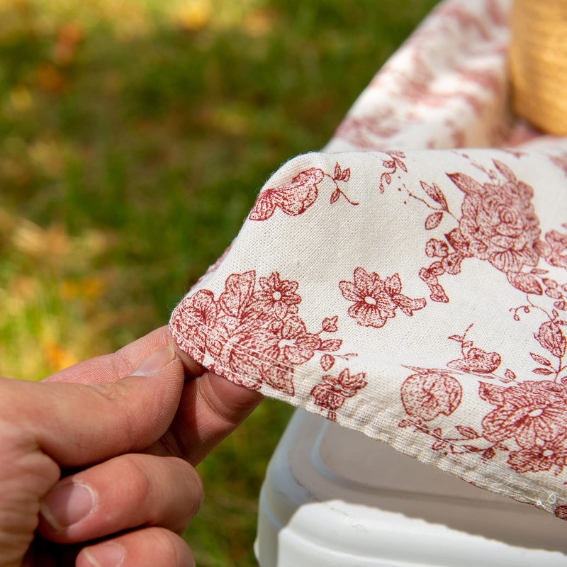 - Material: 100% Polyester with vintage flowers.These covers and bench covers are stain resistant made with an easy to clean spill-proof coating. so stain easily cleans off from them to keep the protected areas free from dirt and messes, and it is reusable, it is easy to take off, fold and store.It works in both dining room and outdoor settings.