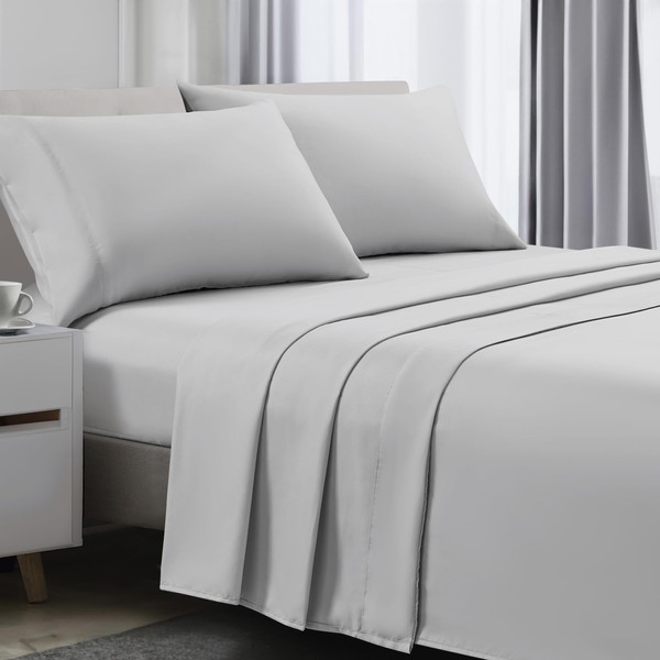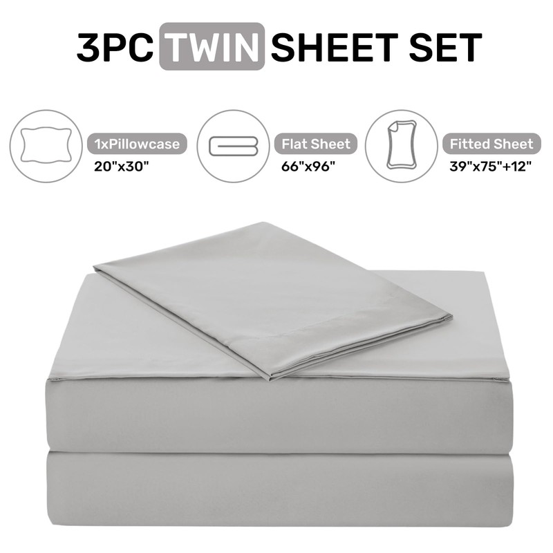 ARTALL Twin Sheets Set - Twin Bed Sheets - 3pcs Sheets with 12-Inch Deep Pockets - Soft & Breathable 100% Polyester Bedding Sheets & Pillowcases - Light Grey