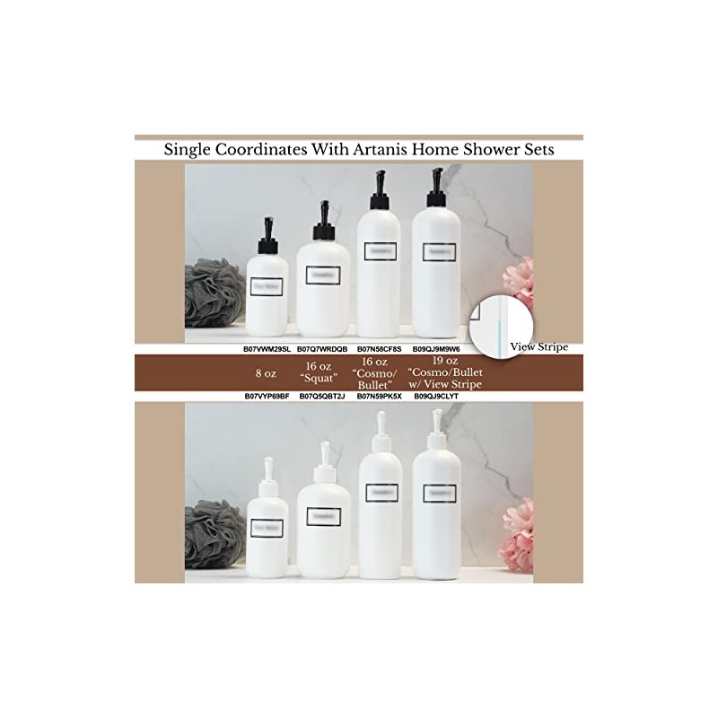 Artanis Home Artanis Home Silkscreened Empty Shampoo Bottle, Cosmo/Bullet 16 oz, White (White Pump)